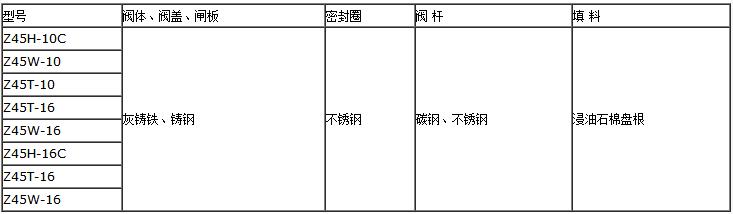 三、Z45H鑄鋼暗桿閘閥的零件材料: