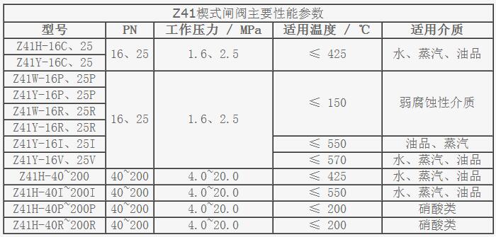 Z41楔式閘閥產品性能參數