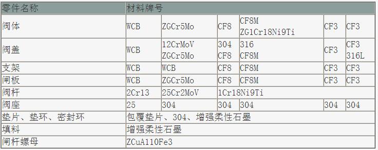 Z41楔式閘閥產品零部件材料