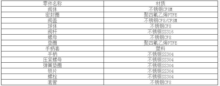 Q61F三片式活接對焊球閥主要零件材料