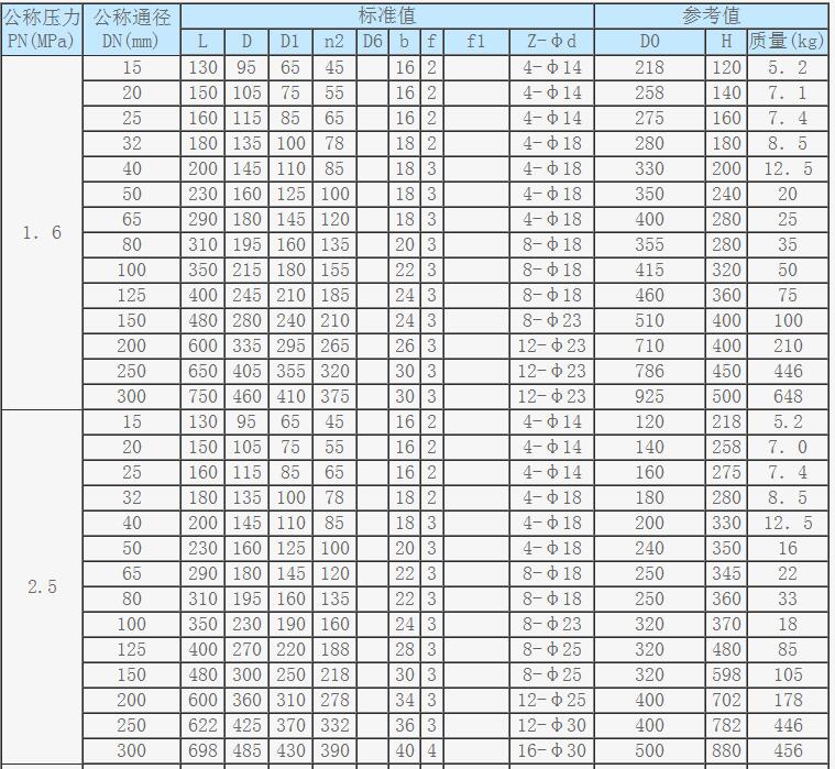 法蘭截止閥主要外形尺寸、連接尺寸及質量
