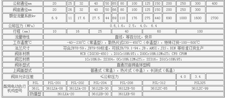 電動精小型雙座調節閥主要技術參數
