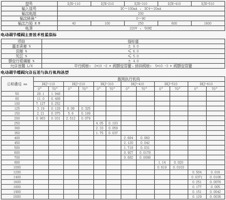 電動(dòng)調(diào)節(jié)蝶閥技術(shù)參數(shù)