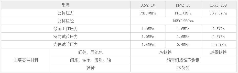 HC42X(DRVZ)型靜音式止回閥 主要技術參數
