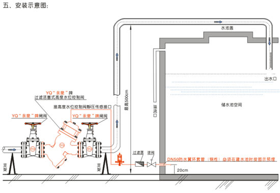 2、此閥必須安裝在水池外,便于調(diào)節(jié)和維護(hù),避免進(jìn)入水池操作的危險性。