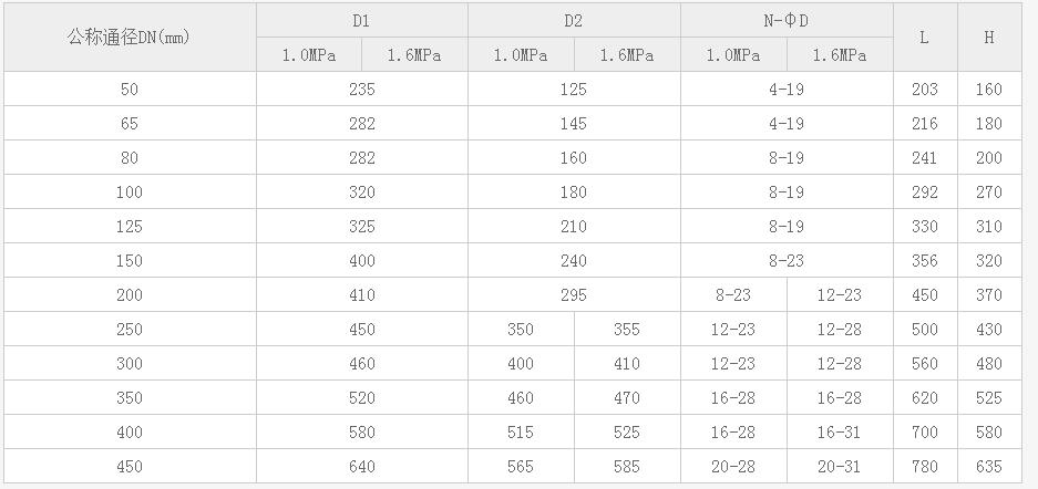 壓力等級(jí):PN1.0、PN1.6、PN2.5