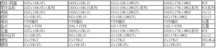 手動(dòng)高壓閘閥-主要零件材質(zhì)
