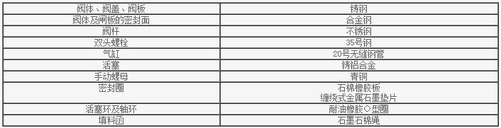 Z641H氣動閘閥主要零件材質