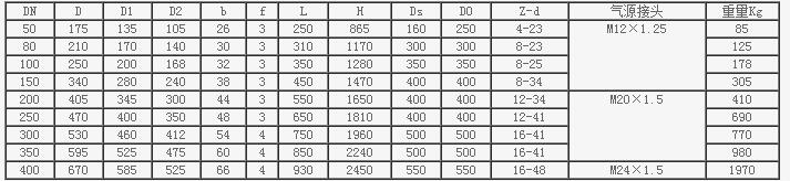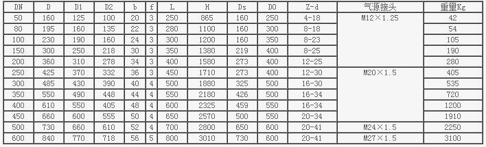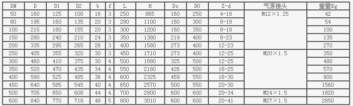 PN2.5MPa Z641H氣動閘閥主要連接尺寸和外形尺寸