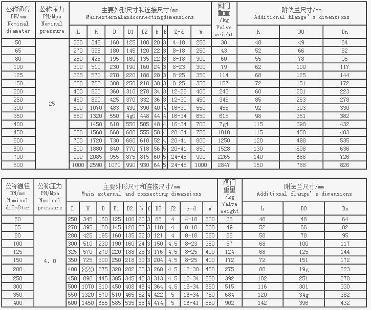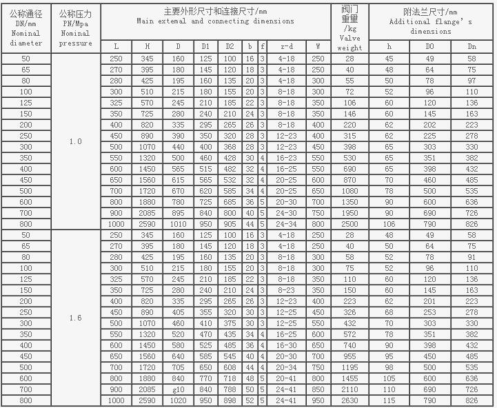 真空隔離閘閥主要尺寸及重量