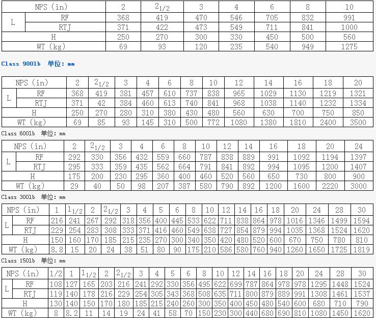 結(jié)構(gòu)長(zhǎng)度 ANSI B16.10