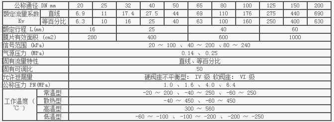 精小型氣動單座調節閥主要技術參數