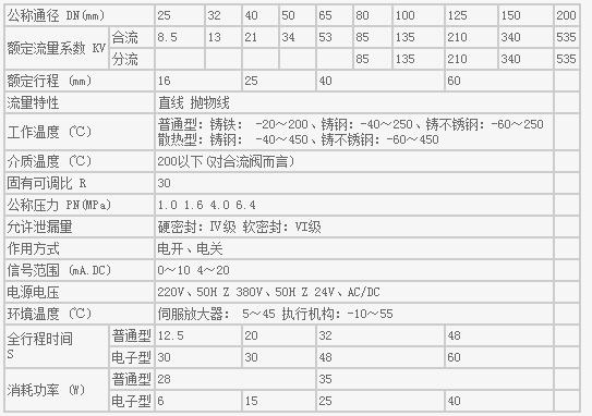 本系列產品口徑由25mm至200mm,公稱壓力有1.0、1.6、4.0、6.4MPa,溫度范圍-60℃至450℃,控制信號為0~10或4~20mA.DC。配用不同的執行機構可分為普通型和電子型兩種。