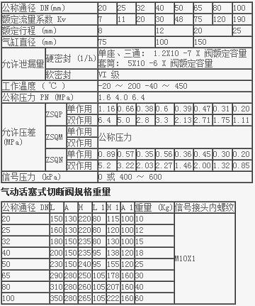 氣動(dòng)活塞式切斷閥技術(shù)參數(shù)