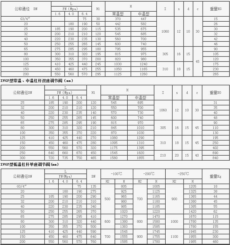ZVGP型常溫、中溫杠桿單座調節閥(mm)